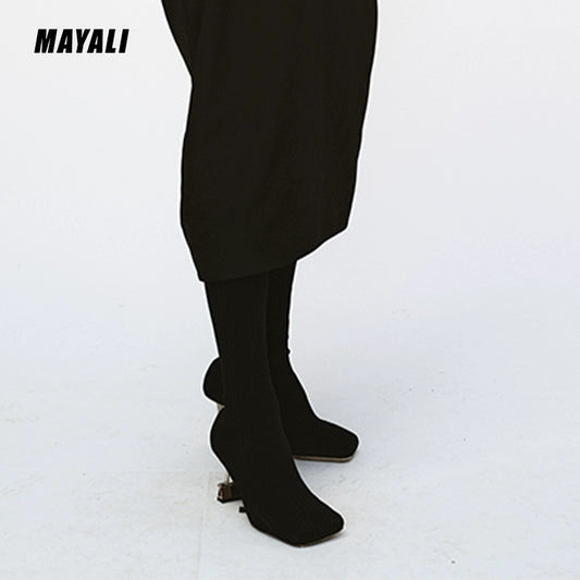 MAYALI square-toe black high-heeled elastic high boots - lioe