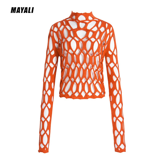 MAYALI staggered intarsia cropped cutout long-sleeved top - Anitwo