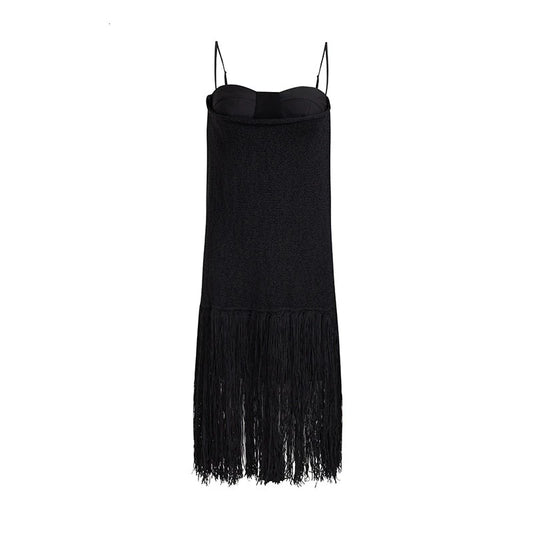 MAYALI tassle midi lenght contrast paneling woven tassel summer holiday dress -Deube