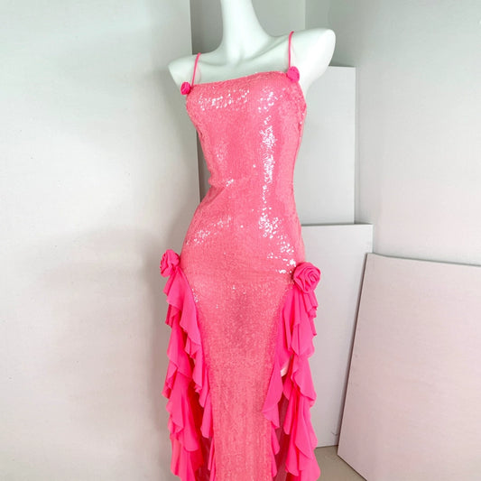 DOLLY Luxury Blue/Pink Sleeveless Sequin Suspender Celebrity Style Dress-FANI