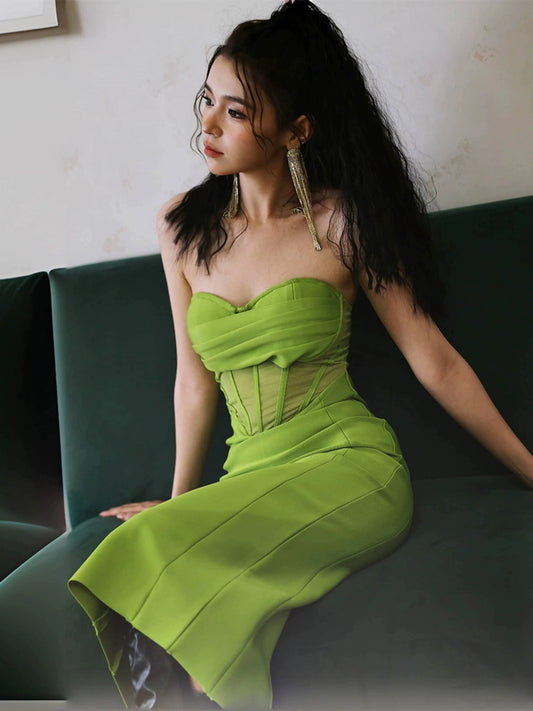 DOLLY Luxury Light Green Corset Tube Top Slim Fit Hip Long Dinner Dress-SARA
