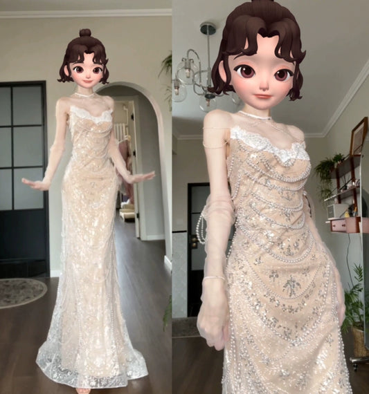 DOLLY Luxury Off White Retro Beaded Tube Top Sequin Long Wedding Dress-MARKU