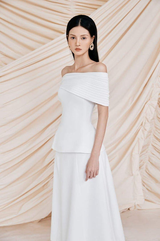 Pleated Shoulder Top & Midi Skirt Set -LYNN