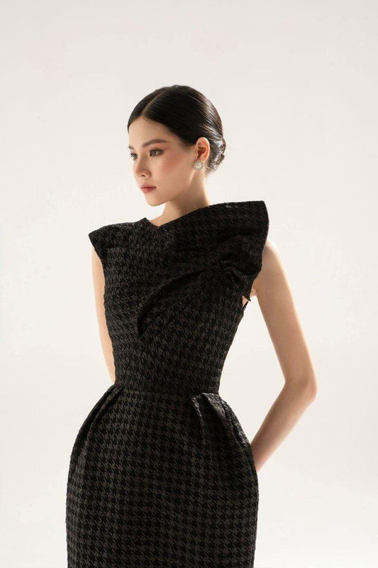 Black taffeta 3d texture bow dress-ELLE-DOVE
