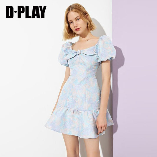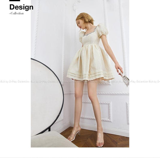 DPLAY Summer New Almond Milk White Princess Tutu Small Puff Sleeve Dress - Tria