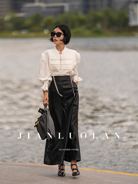 Huanzi customized loose slit midi black skirt - Swan