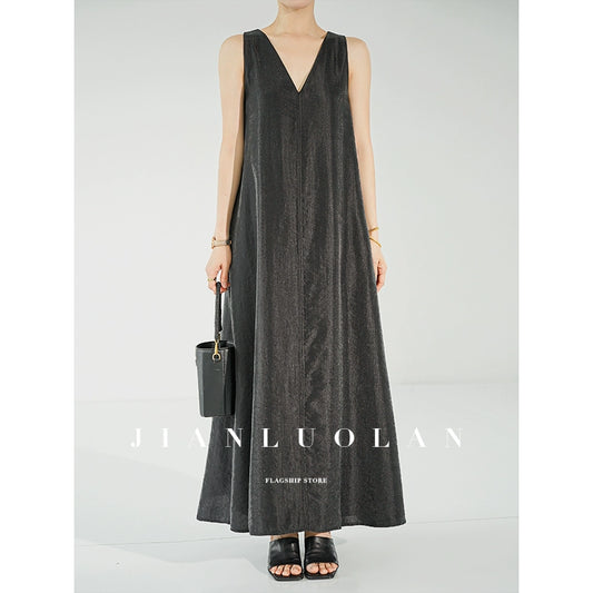 Huanzi custom high-end long sleeveless V-neck dress summer - Miel