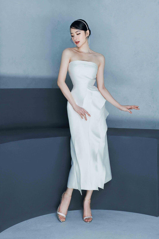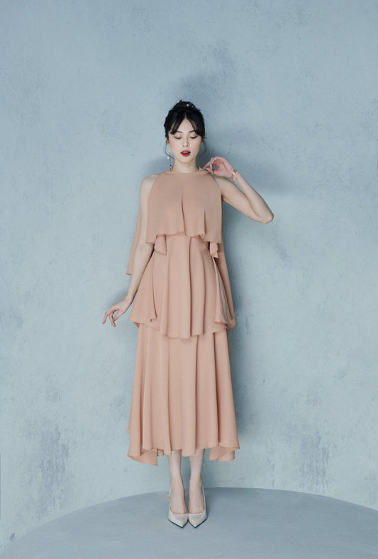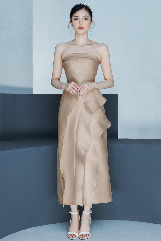 LIGHT GOLD PALAIS MIDI DRESS-DEVI