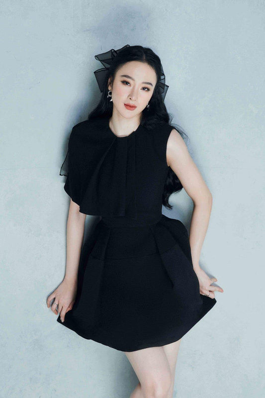 Black SINGLE SIDE CAPE MINI lbd DRESS- Emali