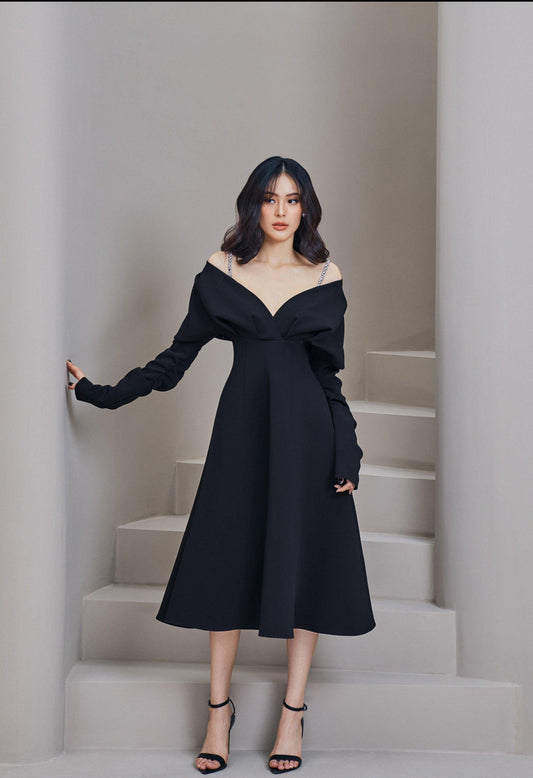 BLACK LA DUREE CHIFFON MIDI DRESS-MITA