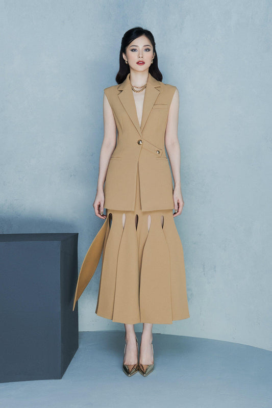 Salmon Pink waterdrop cutout midi skirt -NIA
