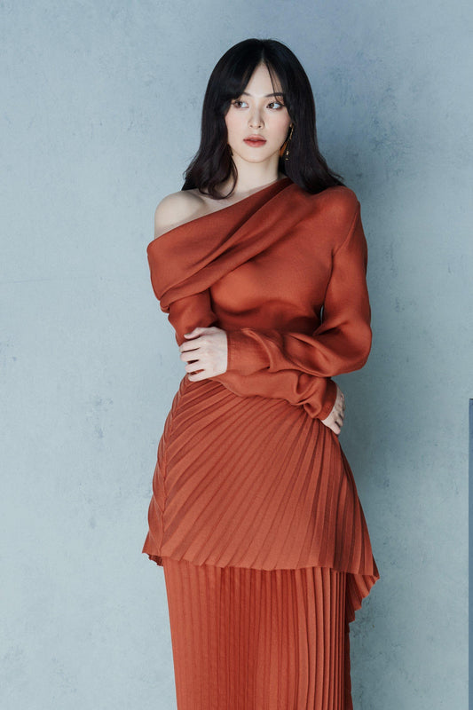 DARLENE TOP WITH CRYSTAL BUTTON SKIRT TWO PIECE SET -EMMA