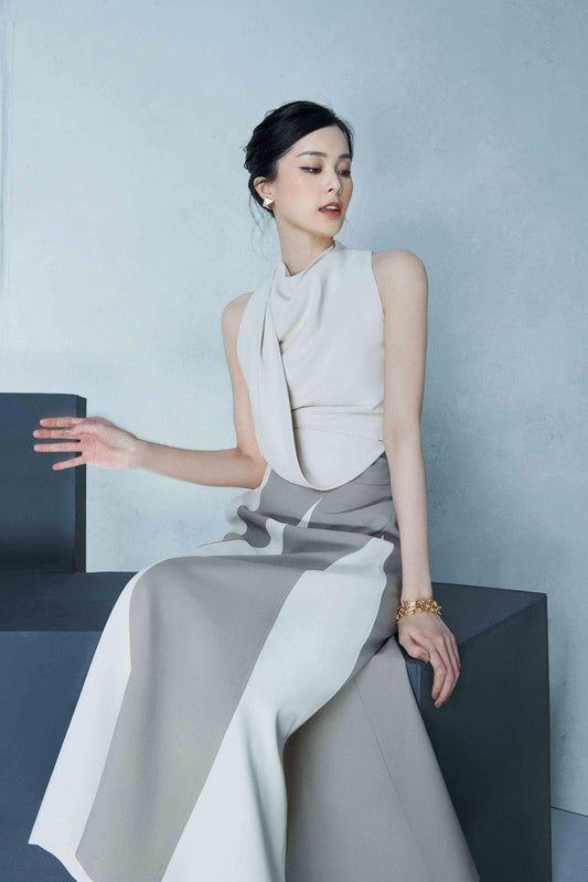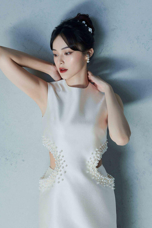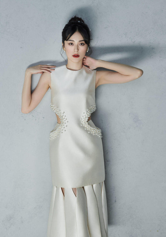 SELINE CUT-OUT TOP WITH PEARL-ASH