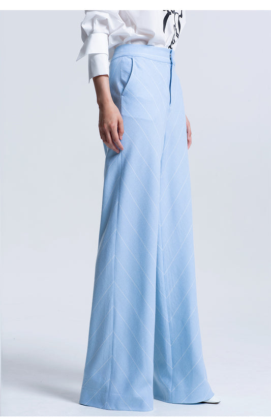 LEDIM W highend oblique stripe gray wide leg pants trousers -pieo