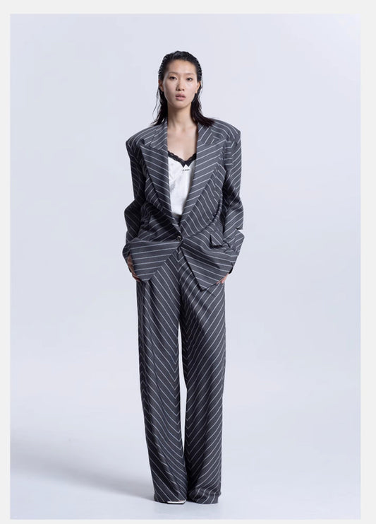 LEDIM W highend oblique stripe t shaped gray suit jacket blazer - Pieo