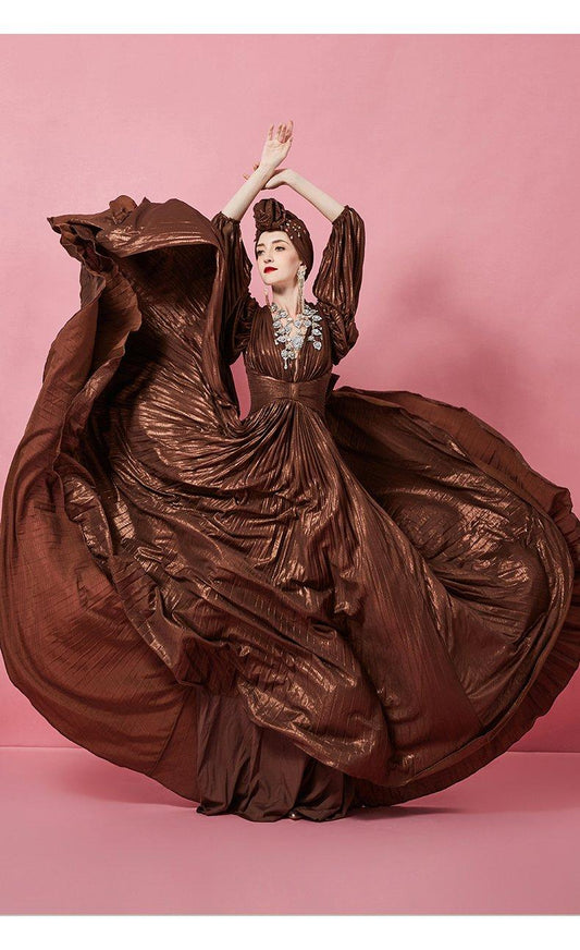 Long pleaded big puffy sleeve elegant inspired couture black dress- Isa