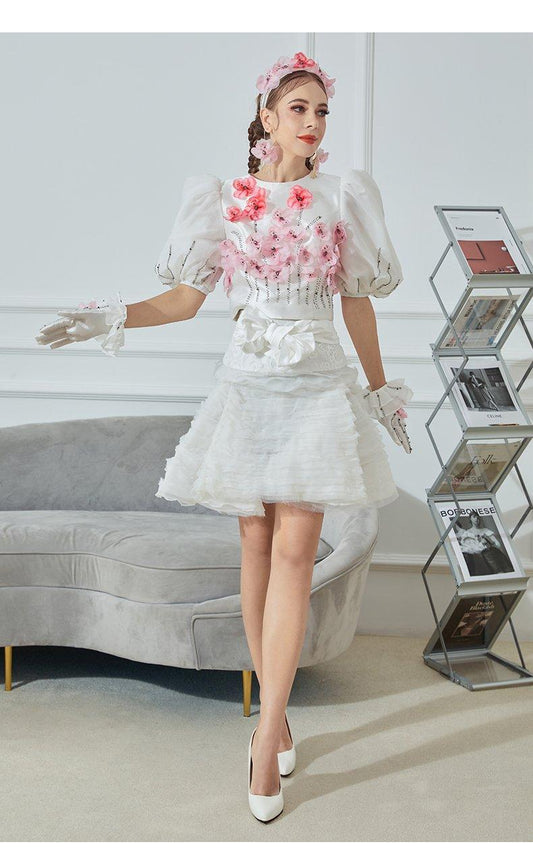 Pink handmade printed flower ruffled pleated romantic suit cocktail suit- Riri