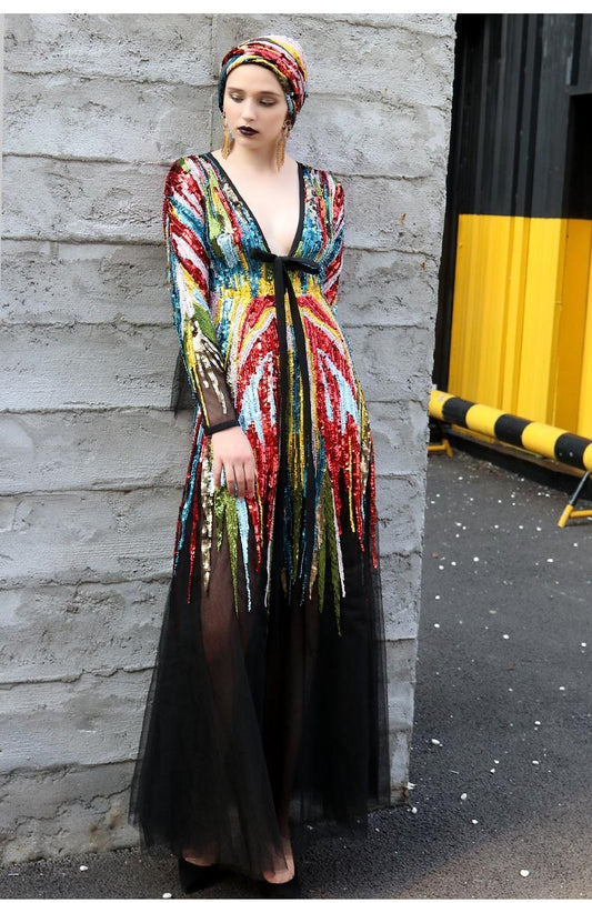 High-end Limited edition hand crafted custom-made colored sequins one of a kind mother of the bride wedding evening gown - Elowen