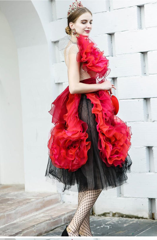 Statement limited edition one shoulder pleated flower banquet partY elegant cocktail red blouse dress - India