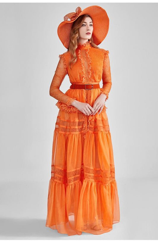 Limited edition long-sleeved elegant evening orange dress long dress gown - Mimi