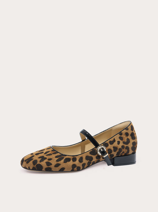 LilyWei Vintage leopard print straight strap flat pumps are comfortable- ARABELLA