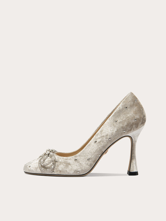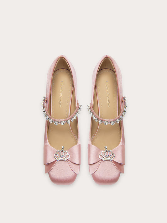 LilyWei [Bright Moon] French rhinestone with pumps, pointed toe, square heel, comfort-DAISY