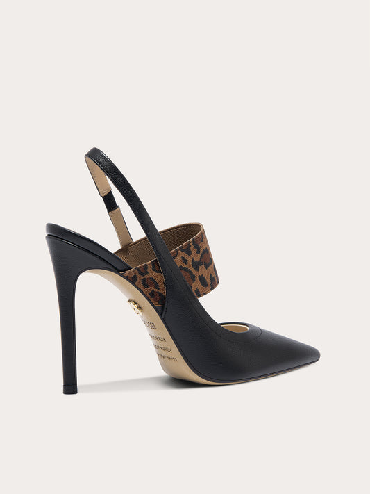 Lily Wei black retro leopard print toe fashion heels summer comfort- CLARA