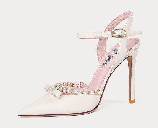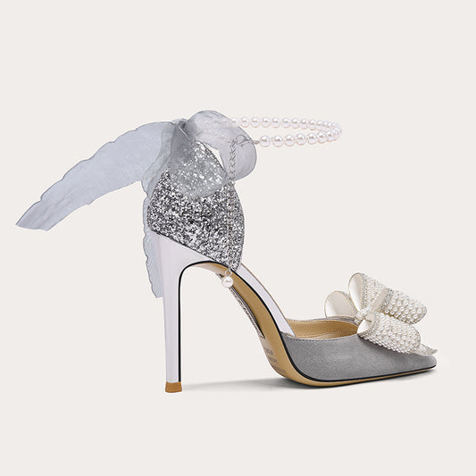 Lily Early 2023 Spring fairy high heels stiletto pearl bow single shoes- Nicola