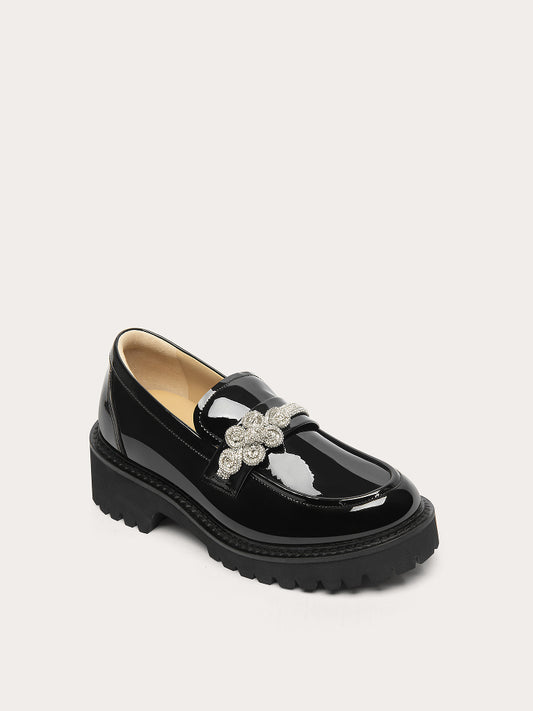 Lily Wei Fashion Black Patent Leather Loafers 2025 New College Style Literary Small Leather Shoes- CAMELIA