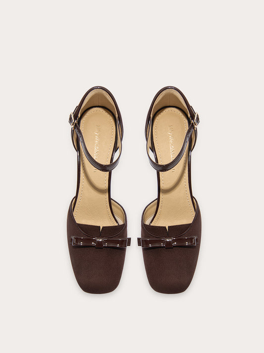 Lily Wei brown vintage bow heel heel sandals square toe heel comfort- ARIA