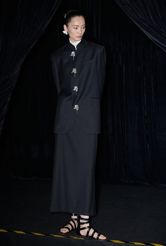 M essential Mackay designer gold stand-up collar shirt pants - ethan.