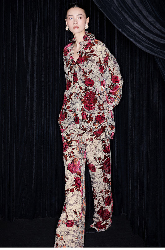 M essential Mackay designer red silhouette shirt pant suit - Riaba.