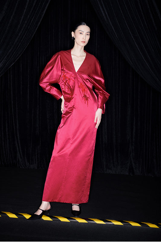 M essential Mackay designer Tuoba silk-velvet silhouette puffer jacket dress- Tuoba