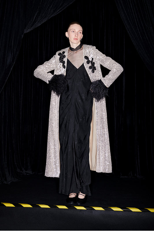 M essential Mackay designer shimmers pavé embroidered coat - mother.