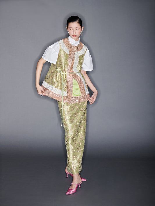 M essential Mackay designer embroidered semi-sheer silhouette shirt skirt set - Arani.