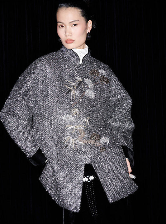 M essential Mackay Magnolia embroidered sequins padded shoulder crop coat dress pants suit - Ilie.