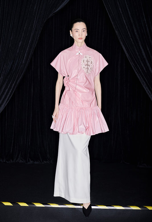 M essential Mackay designer Pink Peach Quilt Pleated Cardigan dress skirt - Lotta.