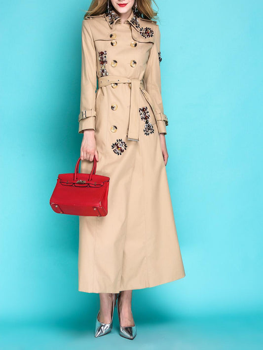 Classic autumn winter luxury limited edition handmade beaded khaki trench coat - Siaha Hearts