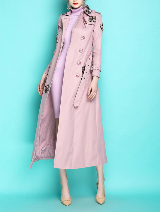 Classic autumn winter luxury limited edition handmade beaded trench coat - Siaha lilac Pink