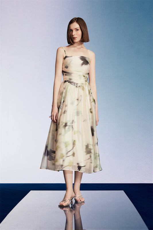 PURITY cocktail morandi-print organza slip dress- Rome