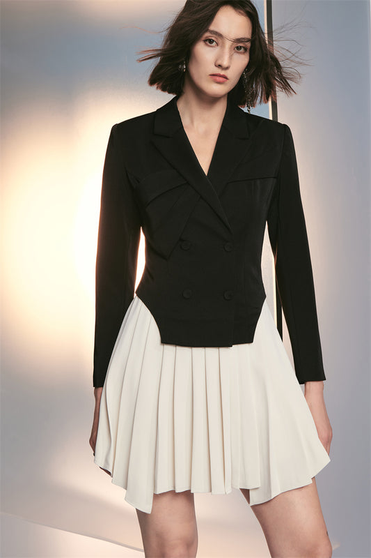 PURITY RING designer geometric short pleated contrast suit dress- Treasure