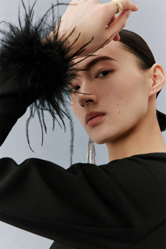 PURITY Elegant Modern Feathers minimalist long-sleeved little black dress- Dennie
