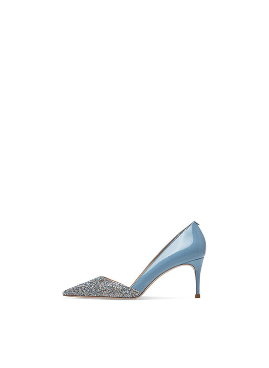 pointed toe shallow mouth nude sparkling crystals pumps shoe- Cleo