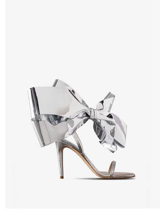 Early spring stiletto sandal silver sequin bow detail and one-word buckle- Torenta