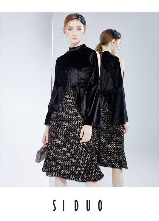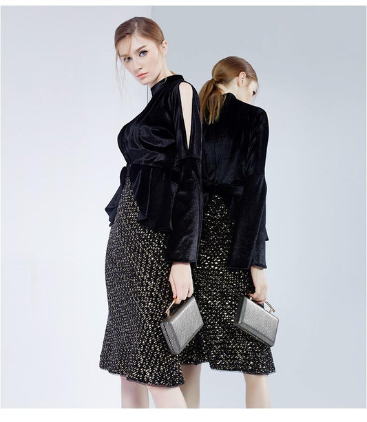Evening dress banquet elegant elegant style suit set two-piece velvet dress- Colima