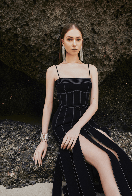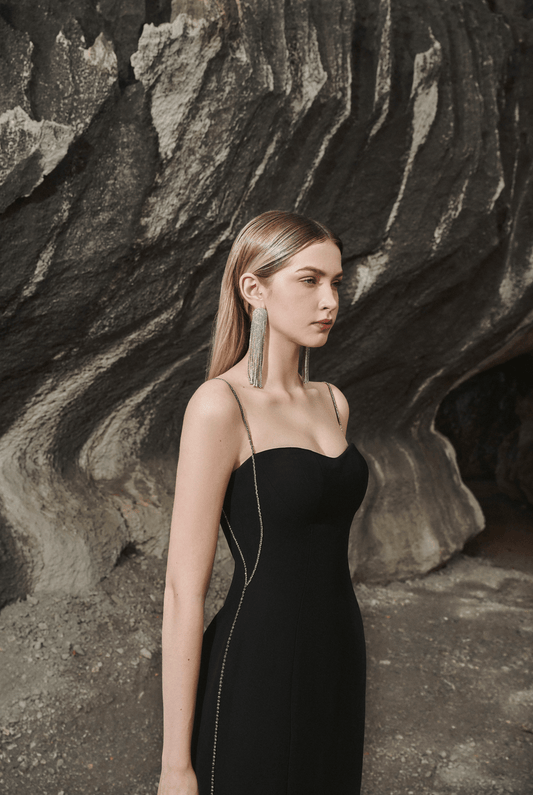 Crystal Embroidered Spaghetti Strap Maxi Dress