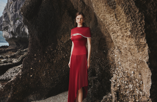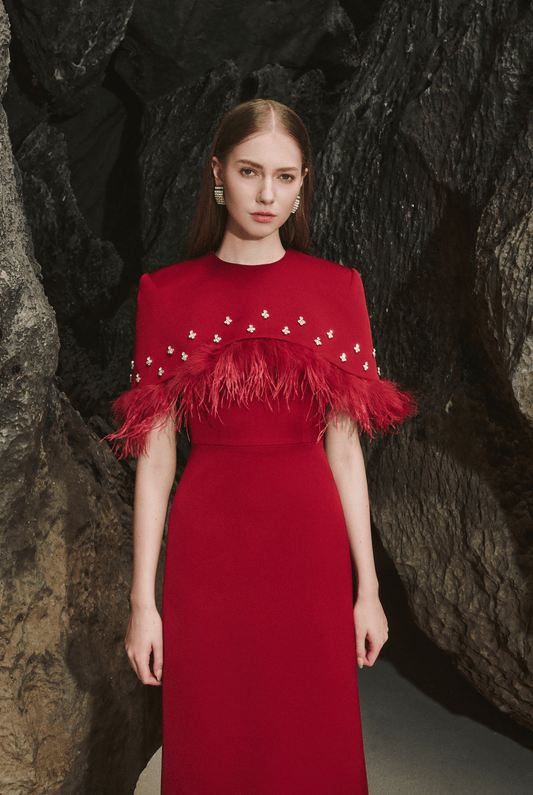 Pleated Cape Column Dress
