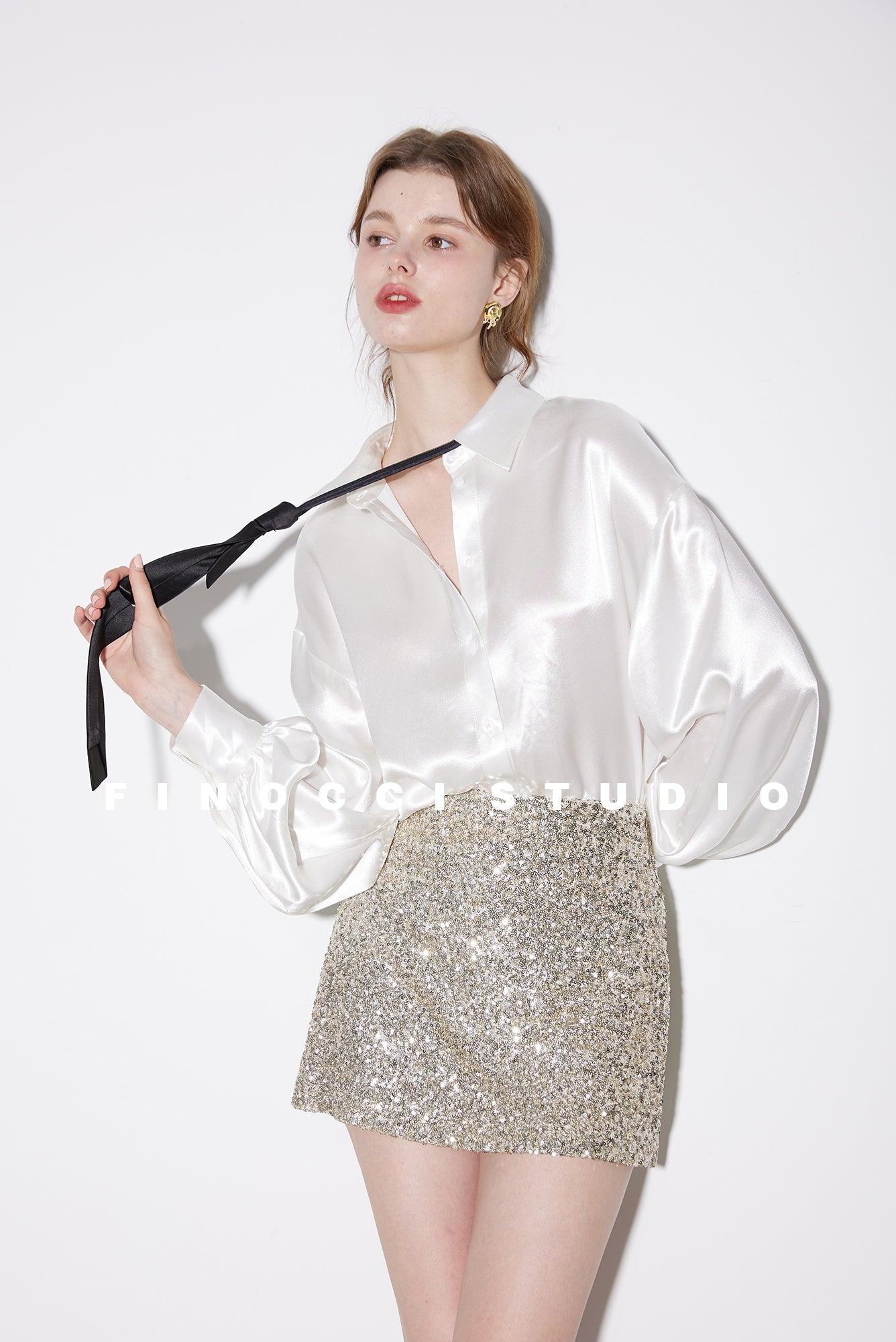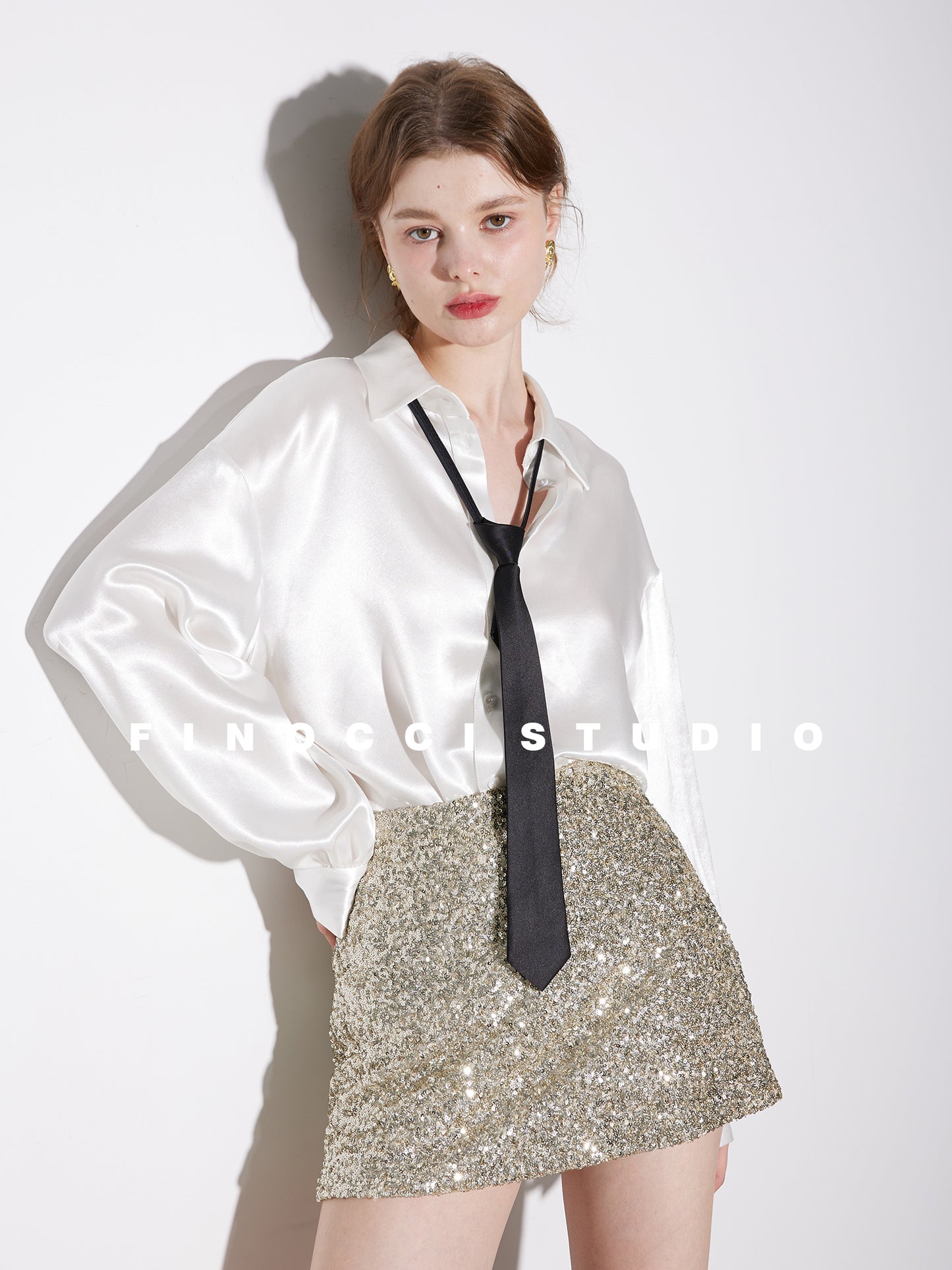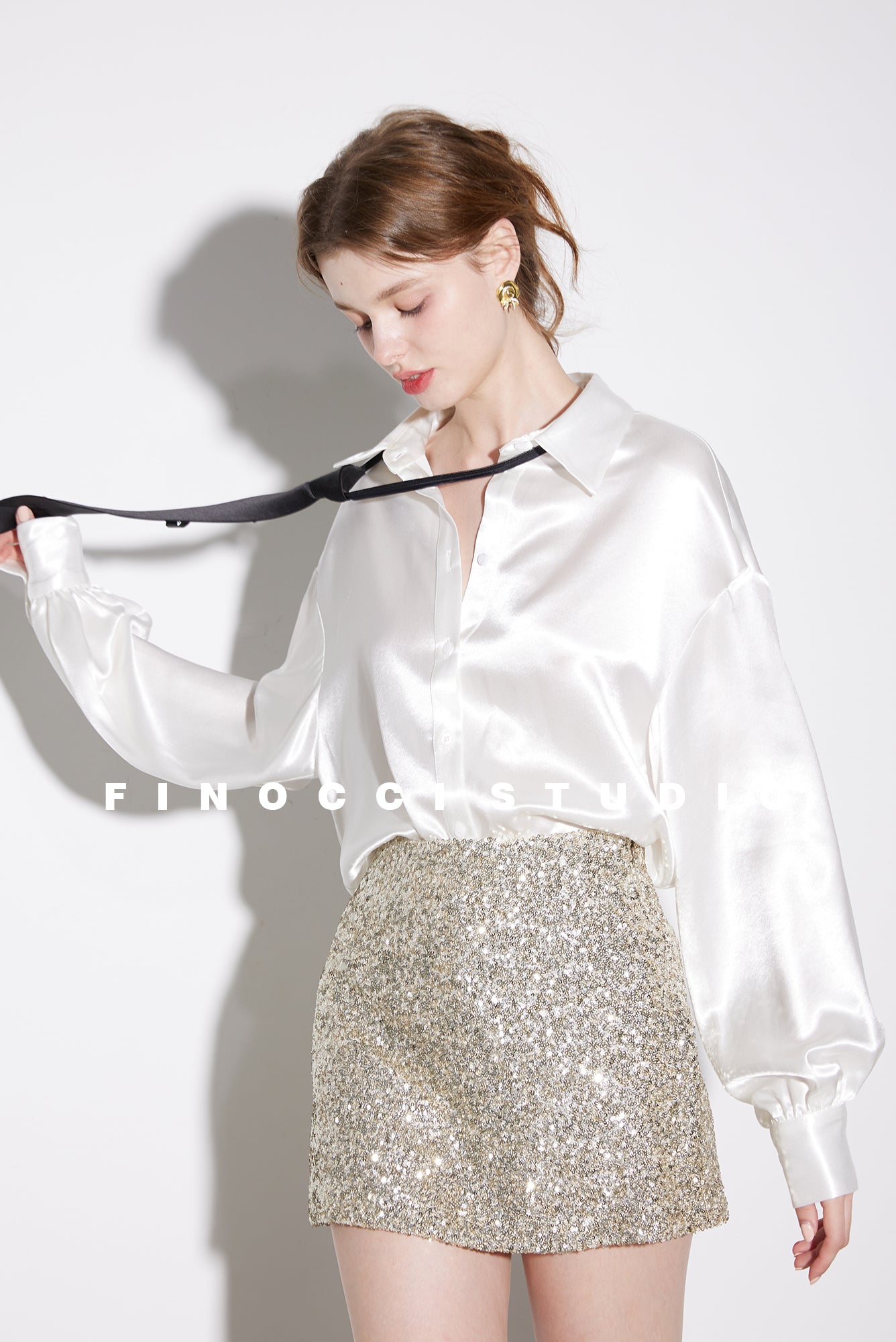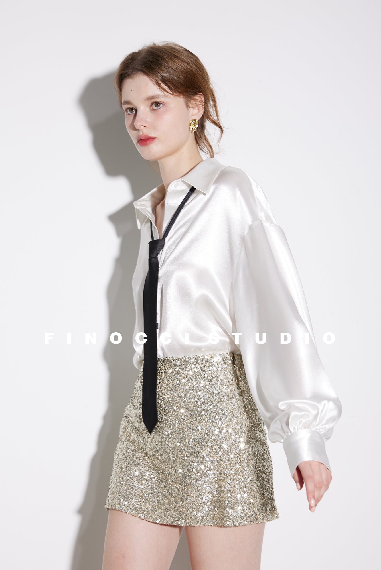 Acetate Satin womens mens inspired tie Shirt - Candid