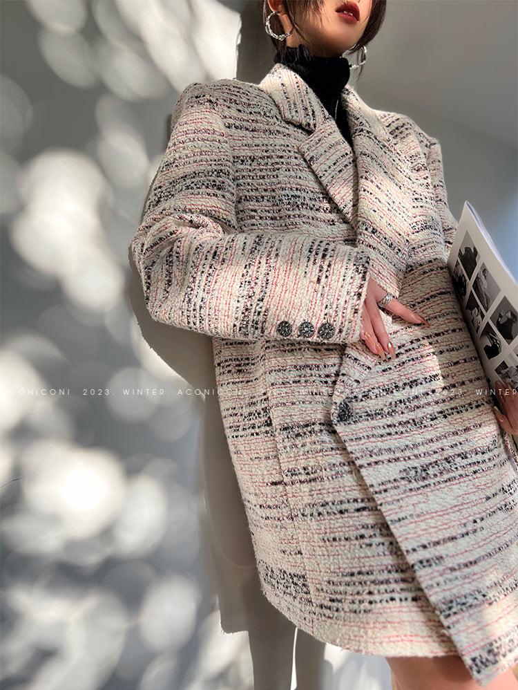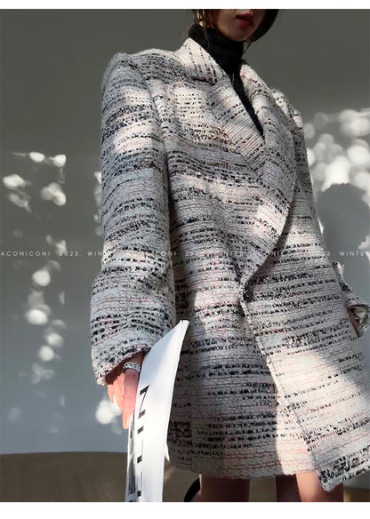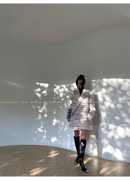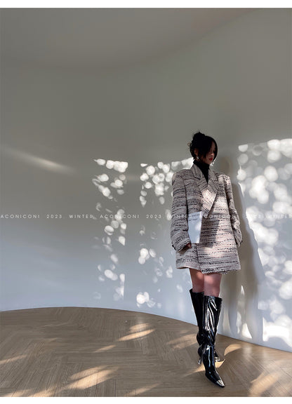 Aconconi Elegant Suit Collar Long Sleeve Single Breasted Jacket- Norwegian Afternoon