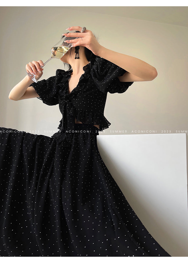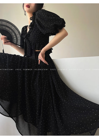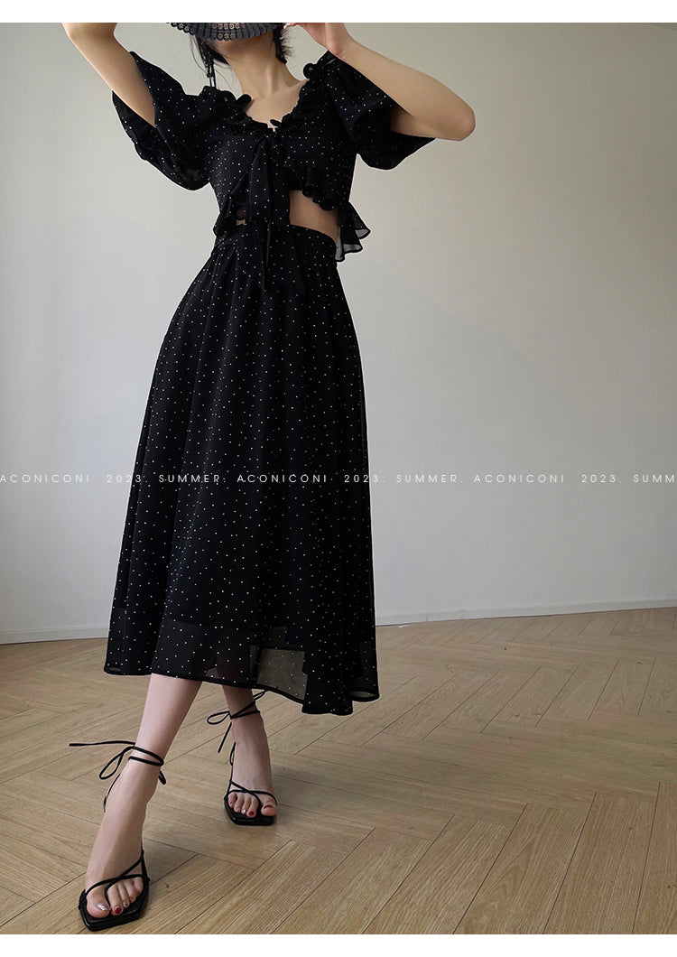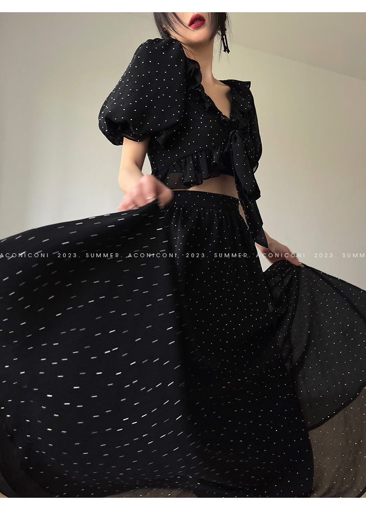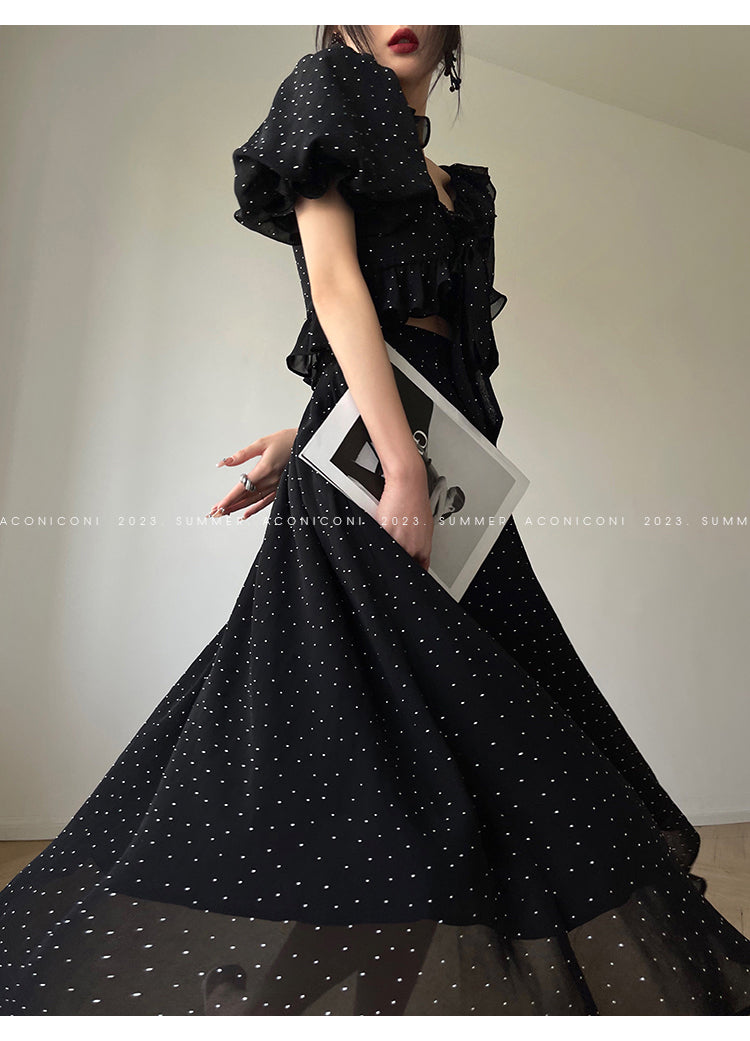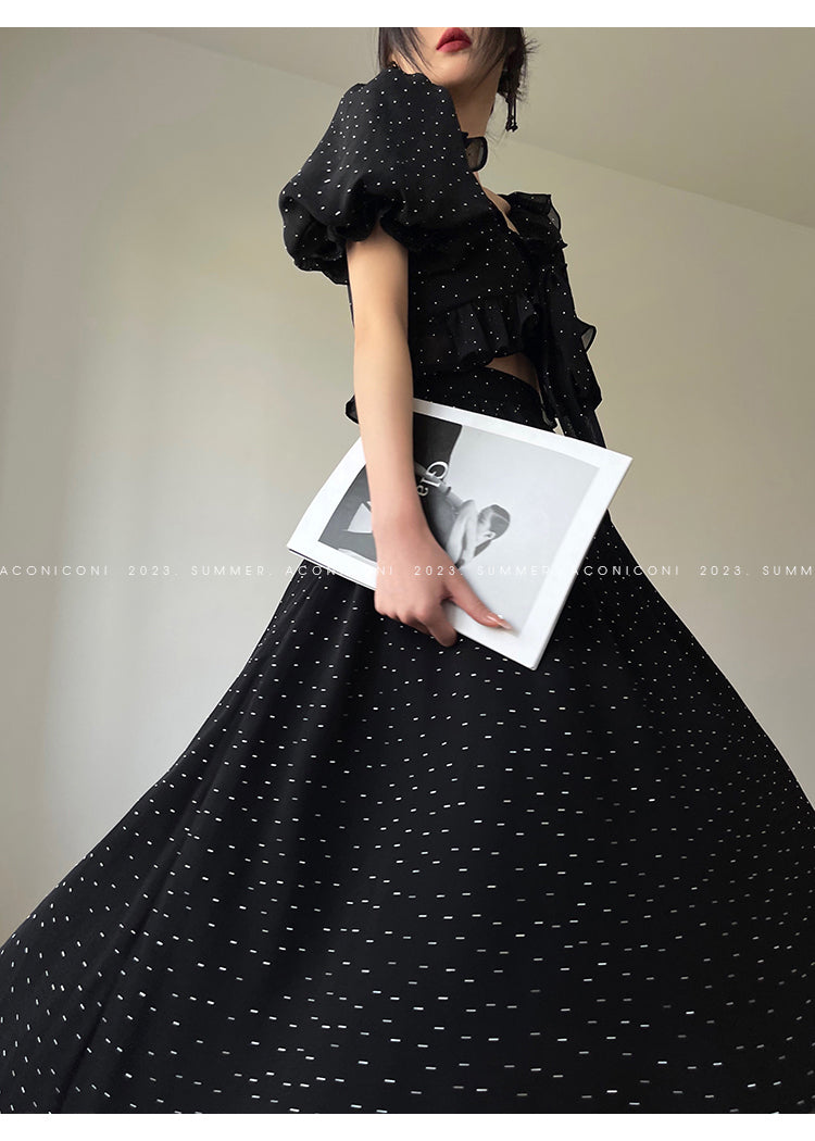 Aconiconi Elegant Polka Dot V-Neck High Waist Wedding Guest skirt top - Hoshino Ryuban